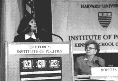 Chai Feldblum, JD '85, speaks as Moderator Barbara Roberts looks on. Ms. Roberts is the DIrector of the Programs for Executives in State and Local Government at the John F. Kennedy School of Government at Harvard and former Governor of Oregon.